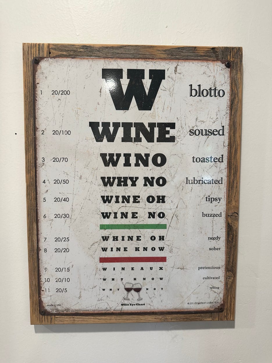 This is a poster with a lot of words about drinking wine on it. I want to do a test to see how well each of the services does in terms of OCR. The query is: “Please OCR the words you see on this poster.”