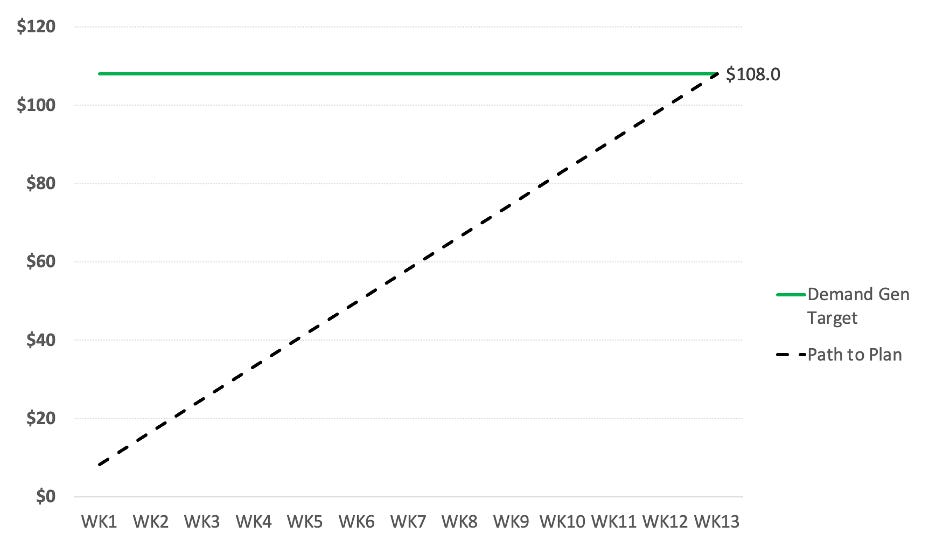 Say for example you had a demand generation target of $108M in the quarter. You might present a table that looks like this.