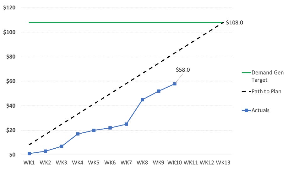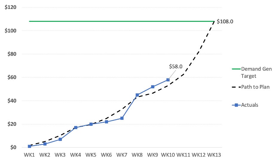 The CEO asks, “How are bookings looking, and are we tracking the way we should?” How do you answer that question? How do you know if you’re tracking the way you should be part-way through the quarter? The same question can be asked about demand generation: “Are we on track to build enough pipeline this quarter?”