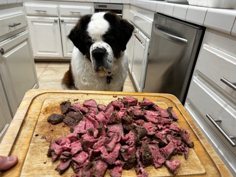 As always – closing with a picture of Ollie. He’s waiting patiently for a generous portion of steak…