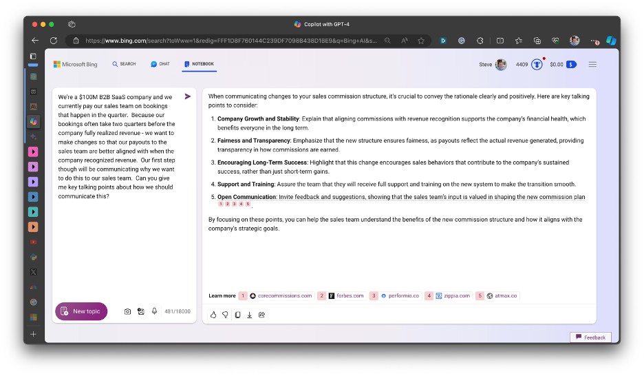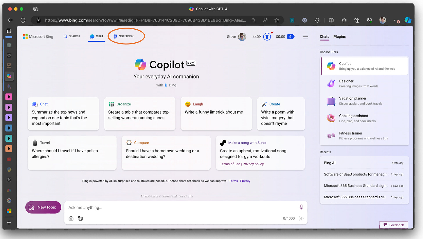 Microsoft also announced a new set of features in their general CoPilot (Bing AI) functionality called ‘Notebook’.