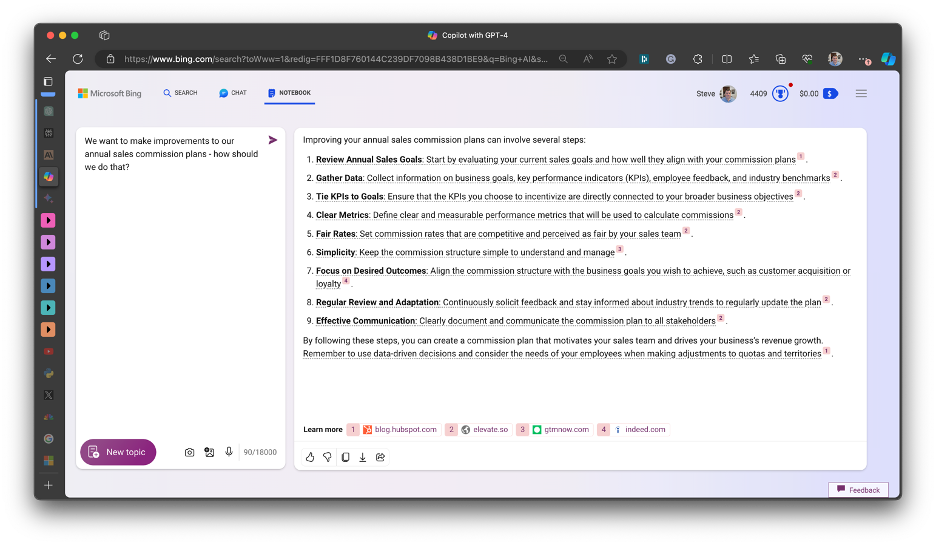 Let’s say you start with a prompt that looks like this: “We want to make improvements to our annual sales commission plans - how should we do that?”