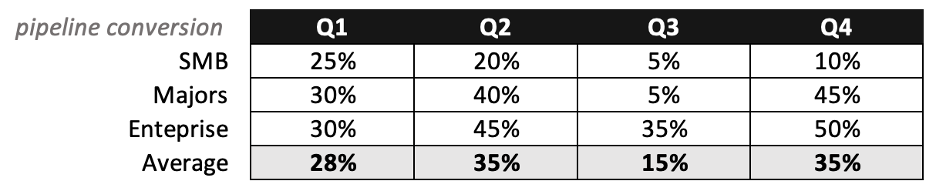 · Once you look at pipeline conversion at the macro level, it’s essential to look at it by sales segment, by pipeline source, and then the combination of sales segment and pipeline source.