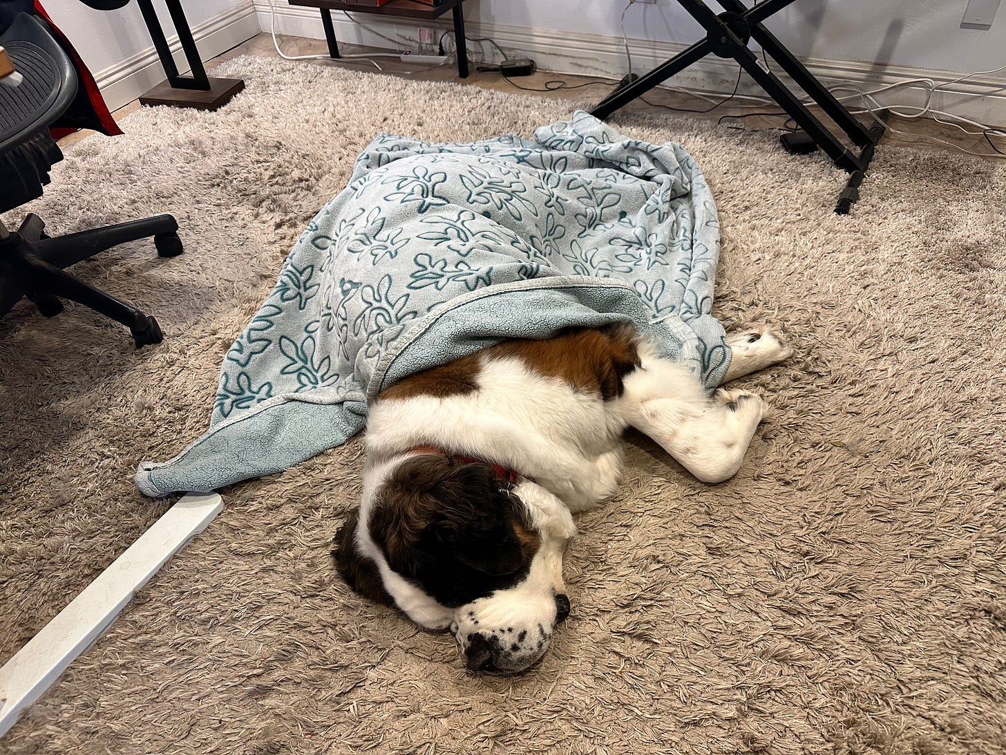 It’s been raining cats and dogs here in the Los Angeles area today. Here’s how Ollie stay warm after a walk in the rain: