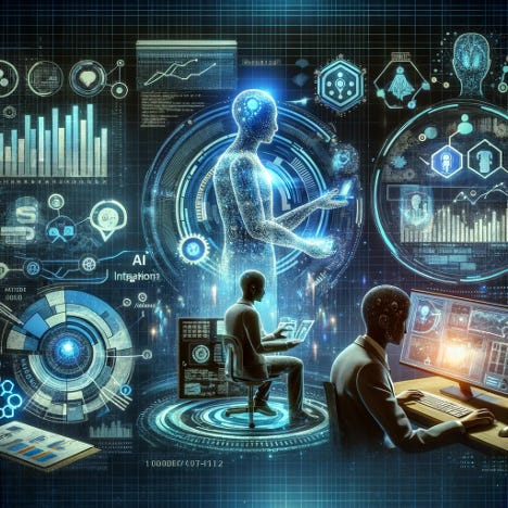 AI-Powered Efficiency: Focusing on the advanced AI of the contact center, an image showing AI and human agents working in tandem could be impactful.