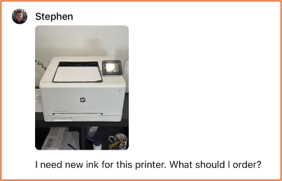 Let’s say you’re a small business, and you’ve got a printer at a remote location that’s running out of ink. Ask a person there to snap a photo and send it to you – and then you can do something like this: