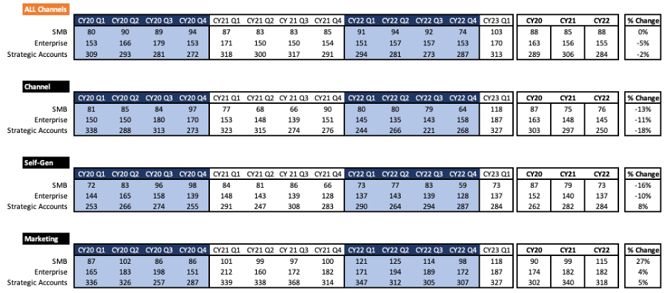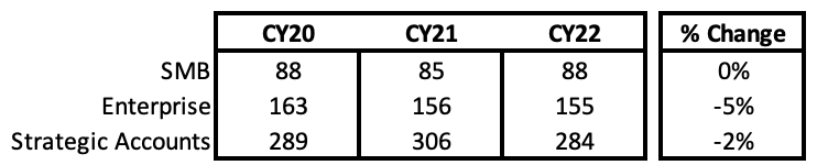 Looking at the averages across the years, and comparing CY22 to CY20, we can see that SMB is flat, enterprise is down 5% and strategic is down 2%.