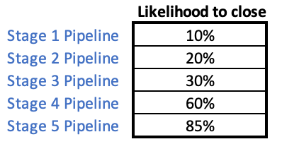 When you start looking at weighted pipeline (the likelihood to close) – you start to see something interesting. Your weighted pipeline – the amount that’s most likely to close – is nowhere near the gross number.
