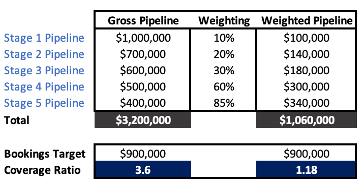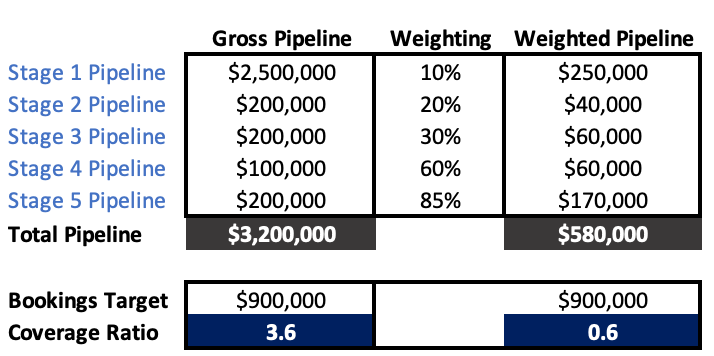 I know too many sales leaders that are just looking at their gross pipeline numbers and ignoring pipeline maturity – doing some simple math and saying “I’ve got enough – I’m going to hit the number.” Let’s say you have a bookings target of $900,000 in ARR for the quarter. If your starting pipeline for the quarter is $3.2M (3.6x) – you would think you would be in good shape. Maybe. Maybe not. It really depends on how mature that pipeline is and its likelihood to close in the quarter.